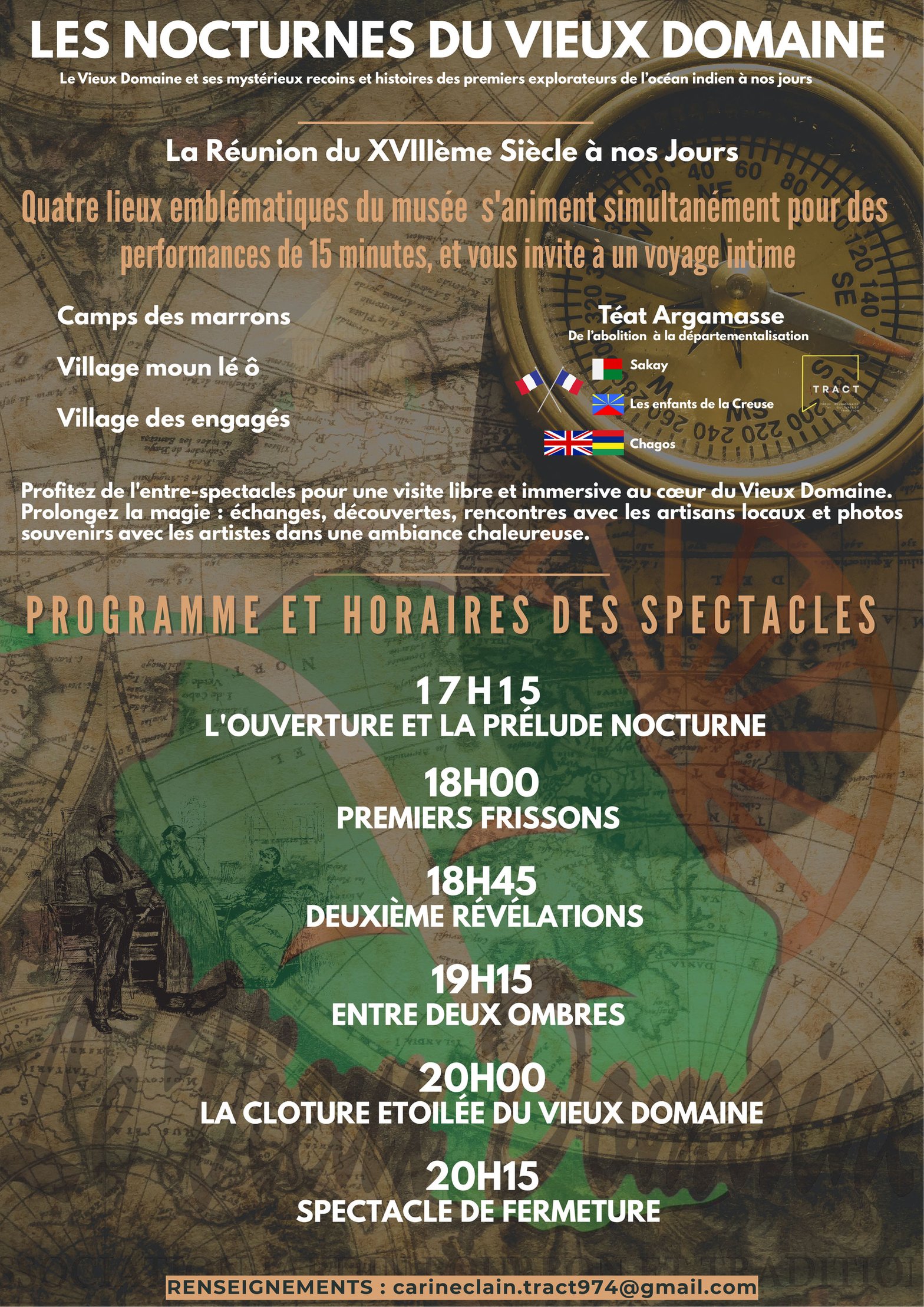 Plongez dans une expérience unique : un théâtre musical grandeur nature au cœur d'un musée naturel. Laissez les "Zistoir dan Fé Noir" vous transporter, là où la culture, l'histoire et l'art s'entremêlent sous les étoiles de La Réunion.Une soirée féérique vous attend, pour un retour aux sources et une palette d'émotions inoubliables.